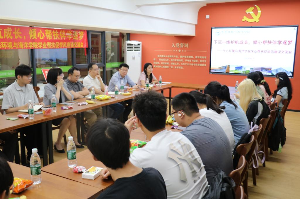 在生活东区“一站式”学生社区空间B102党团先锋驿站举办“下沉一线护航成长,倾心帮扶伴学逐梦”学业帮扶促学风座谈交流会。学院党委副书记武慧娟,班主任周扬、王樟新、吴国钟,辅导员欧少珍及不同年级本科生代表参加。