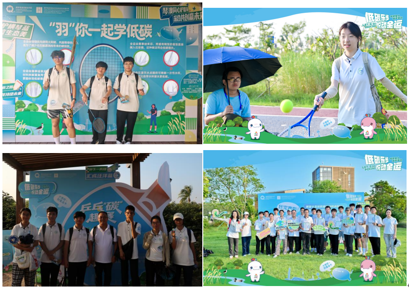 活动现场,同学们积极参与关于碳政策、碳普惠机制的趣味问答,认真学习生物多样性与入侵物种防控等内容的生态科普展板,亲身体验羽毛球、网球、足球、乒乓球不同打卡体验点,在行走中学习、在体验中思考。这种寓教于乐的教学形式,将课堂知识延伸到自然与社会之中,使学生在轻松愉快的氛围中深化了对专业内涵的理解与认同。